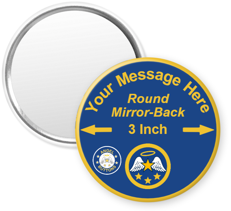 Make a statement with our 2×3 inch mirror back button. Generous size for logos and messaging on one side, real mirror on the back. Popular for salons, kits, and gifts.